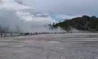 Grand Prismatic Spring is a very famous attraction in Yellowstone Park. There are not many people on the boardwalk. When taking pictures, tourists will consciously wait and are generally very friendly.