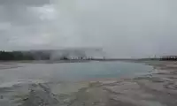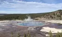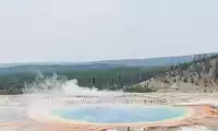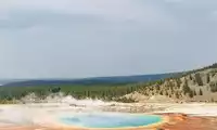 The iconic landscape of Yellowstone National Park. When we arrived at the Grand Prismatic, the weather was not good and it was overcast. The viewing path on the opposite mountain was not open, so we didn't see the gorgeous and spectacular scenery as shown in the postcards, and the photos we took were even worse. But I can imagine what it would be like to look down at the Grand Prismatic in the bright sunshine.