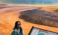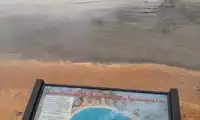 Although the closer you get to the Grand Prismatic Spring, the less you can see its standard full view, but up close, you can feel the heat of the Grand Prismatic Spring's steam and hear its gentle pulsation. It is a wonderful feeling that cannot be seen in photos and is immersive.