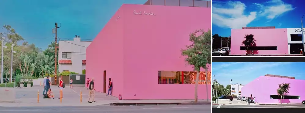 Paul Smith is a landmark building on Melrose Ave. Its ultra-saturated pink color has been spotted by countless influencers.