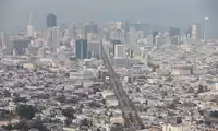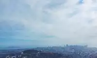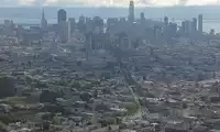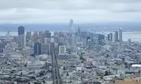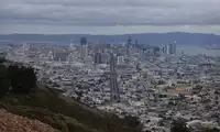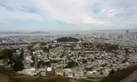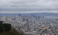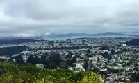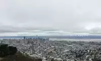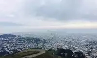 From the top of the mountain, you can have a bird's eye view of the entire city of San Francisco. Although the sky is cloudy, you can still see the sea in the distance and even the Golden Gate Bridge.