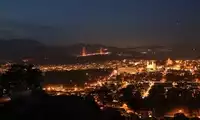 We went down the mountain to have a meal, and then drove up the mountain to see the night view in the evening. It was windy and very cold.