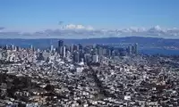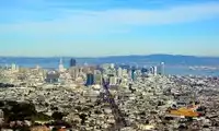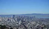 Twin Peaks isn't very high, but you can see the whole of San Francisco from there. The most distinctive features are the Golden Gate Bridge and the colorful rooftops.