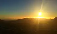 The sun has set and the entire mountain is bathed in warm yellow sunlight.
