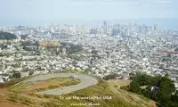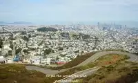 You can drive up to Twin Peaks and park wherever there's free parking. From the top, you can take in the stunning views. You'll see many buildings built right up against the hillside, which is one reason why San Francisco has so many hills and slopes. I guess the gold mining has stripped away the hills.