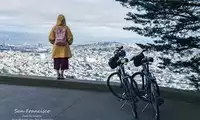 Twin Peaks, the only remaining natural hills in San Francisco, stands approximately 270 meters above sea level and is renowned for its 360-degree panoramic views. The summit is a blanket of earth, rocky and unprotected, with no shelter and strong winds that can be difficult to stand on. I counted the steps as I climbed: 114 on the North Peak and 122 on the South Peak. None of the trails on Twin Peaks have handrails, making the climb quite strenuous. The views from the North Peak are even better than those from the South Peak. Drivers can drive to the parking lot between the two peaks, where everyone begins the climb. Those arriving by bus have to climb 99 more steps than those arriving by car. Despite this, the visitors who reach the summit are excited, beaming and snapping photos. The laughter and joy on the small summit are truly contagious!