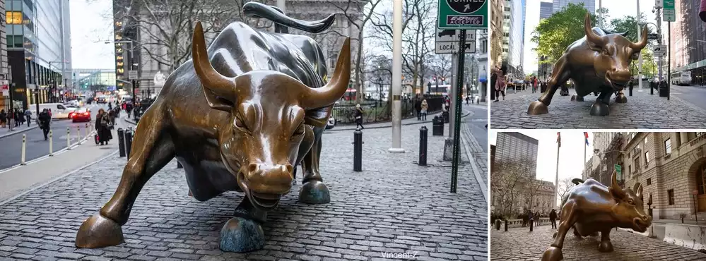 The bronze bull stands at the intersection of Wall Street and Broadway. It is a symbol of "strength and courage". Legend has it that as long as the bronze bull is there, the stock market will always be bullish.