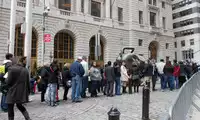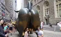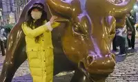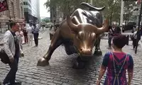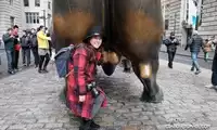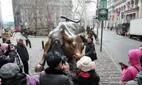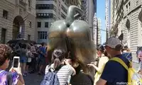 Seeing the long queue, you know the Wall Street Bull is ahead. Many people dream of getting rich, hoping to touch the bull to change their luck. This mascot, symbolizing the stock market's upward trajectory, has been rubbed until it's shiny.