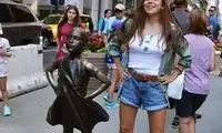 The Charging Bull (Wall Street Bull) is incredibly easy to spot. Just dive into the crowd and you'll be greeted by its imposing presence. It symbolizes American money, power, greed, and high-stakes financing. It's a beloved sight, becoming the second most photogenic statue in New York City after the Statue of Liberty, with countless people circling it for photos. In March 2017, a smaller bronze statue was added to the bull's facade. State Street Global Advisors spent billions of dollars commissioning American sculptor Christine Vibar to create a fearless, akimbo-faced Latina girl, named Fearless Girl. This sculpture has also sparked controversy, with some criticizing her as too "feminist." The strongest objection came from Arturo, the Bull's creator. Since the addition of Fearless Girl, the area has seen an increase in visitors, particularly young women.