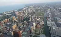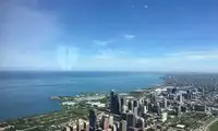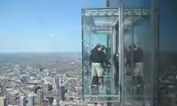 The most worthwhile experience is the Skydesk, located on the 103rd floor of the skyscraper's observation deck. It's 1,353 feet (412 meters) above the ground and constructed from three layers of thick glass, capable of withstanding a five-ton load. The deck protrudes approximately 1.2 meters outward, and is 10 feet (3 meters) wide and high. Three sides are covered in glass, offering panoramic views of the bustling Chicago skyline, while the other side offers a glimpse of the endless coastline and Canada across the sea. Being there feels like floating in the air, a truly thrilling experience.