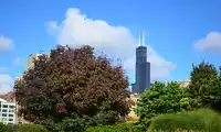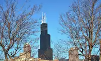 This building is located in the Downtown Loop, just across the river from Union Station. Once the world's tallest skyscraper, it has been surpassed by many others, but it remains the tallest building in Chicago and a landmark. Driving near the Loop, you can see the skyscraper from a distance on the highway.