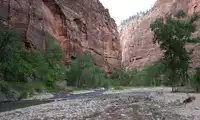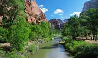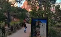 The Weeping Rock Trail is very short. As you walk up it, you'll see water drops falling from the rocks, making them look like they're crying. Children love playing here and deliberately walk through the water drops to get wet. The Riverside Walk is a comfortable walk along the river, with a gentle breeze and small trees on both sides. The children threw stones into the river and refused to leave. Afterwards, they saw deer and many squirrels, and they weren't afraid at all.