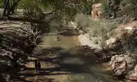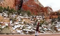On the way back to Las Vegas from the Grand Canyon and Page, you can drive north through Zion National Park, which is a more enjoyable option and saves you a full day of driving. Zion National Park is located in the state of Utah, and admission is $35 per car. We visited in late January. The entrance to Zion is surrounded by snow-capped mountains, with tall pines and cypresses lining the roadside. Under the bright sunshine, the vibrant white snow and dense forest create a fairytale-like atmosphere. After passing through the mountains near the entrance, you'll reach the north-south scenic driveway. This driveway follows a stream, winding through hills and jungle along the way. You can hear the gurgling stream flowing nearby, making it a truly relaxing experience. The further you go, the more foliage you'll find, and near the end, the hillsides are covered in patches of cacti, a truly pleasant sight. At the end of the driveway is a parking lot, essentially the entrance to the valley, where you can hike further in and through the valley. We parked and wandered around for a while, and spotted a family of deer calmly grazing. They kept getting closer, a truly adorable sight.