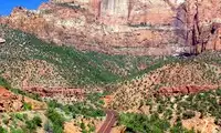 After Bryce Canyon, we had a buffet lunch and then drove about two hours to Zion National Park. While the scenery here wasn't as spectacular as Bryce Canyon, it still had its own unique beauty. The distinctive feature was the reddish-brown road, which, while man-made, was quite interesting. Furthermore, the entire national park is very self-guided. You can take the park's minibus to various trails and follow the designated paths up the mountain; you're not allowed to drive up the mountain.