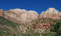 The sandstone cliffs of Zion National Park are named after the biblical figures Abraham, Isaac, and Jacob.
