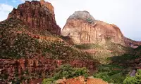 Mount Zion, located in southwestern Utah, is renowned for its vibrantly colored canyons. Established in 1919, it covers an area of 60,700 hectares. Zion Canyon, the focal point of the park's scenery, is approximately 24 kilometers long and less than a kilometer wide, or even less than a meter. In some places, two people standing side by side can touch the canyon walls. The canyon is 2,000 to 3,000 meters deep, with walls that are almost perpendicular to the ground, creating a treacherous and daunting climb. Zion Canyon's most famous feature is the solitary peak known as the "Great White Throne." Rising majestically from the canyon floor, this 427-meter-tall peak boasts a distinctive gradation of rock color, starting with a red base that gradually fades to a lighter red and white. Lush green trees crown the peak, creating a graceful, elegant pillar of jade amidst the vibrant canyon. Mount Zion was once a sacred site for Mormon pioneers, and "Mount Zion" means "God's Heavenly City." Now, its image as a pilgrim site is gradually being forgotten, and its use as a place of entertainment has made it a true "paradise on earth."
