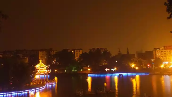 The park features a winding river, pavilions and terraces built alongside it, winding waterside corridors, and unique curved and arched bridges across the river, creating a charming and enchanting path. From the observation deck, one can gaze out over both the South and North Gardens, and admire the spectacular sight of thousands of boats converging at the Chihe Pier, stretching for miles.