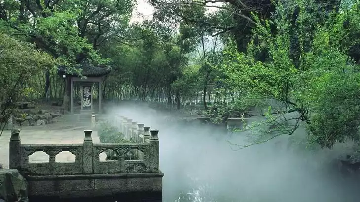 Yixing Bamboo Sea, a National 4A-level scenic area, lies at the junction of Jiangsu, Zhejiang, and Anhui provinces. Bounded by the highest peak in southern Jiangsu, and boasting the stunning Mirror Lake below, the scenic area boasts rugged terrain, consisting of mountain basins, peaks, lakes, hills, streams, and numerous caves. Key attractions include "The First Source of Taihu Lake," "Southern Jiangsu's First Peak," "Bamboo Heralds Peace," "The Beautiful Scenery of Mirror Lake," "Rope Bridge Over the Water," "Ji Zhao Zen Temple," "Bamboo Forest Waterfall," "Emerald Corridor," and "Suspended Plank Road."