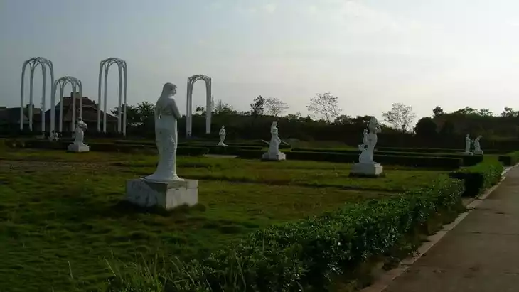 There are over 1,200 trees and 40,000 shrubs, with a greening rate of 87.4%. There are two lakeside islands, two groups of mushroom pavilions, and multiple grape trellises. The park boasts an activity center for the elderly, a swimming pool, and a variety of children's entertainment facilities, including a boat ride and a fun castle. The park is ablaze with vibrant lights: courtyard lights along the paths, flared lanterns beneath the trees, around the lake, and rim lights on the Jade Belt Bridge, Nine-Curve Bridge, and the Octagonal Pavilion. Landscape lights, butterfly lights, coconut tree lights, and fireworks lights adorn the park with a vibrant atmosphere.