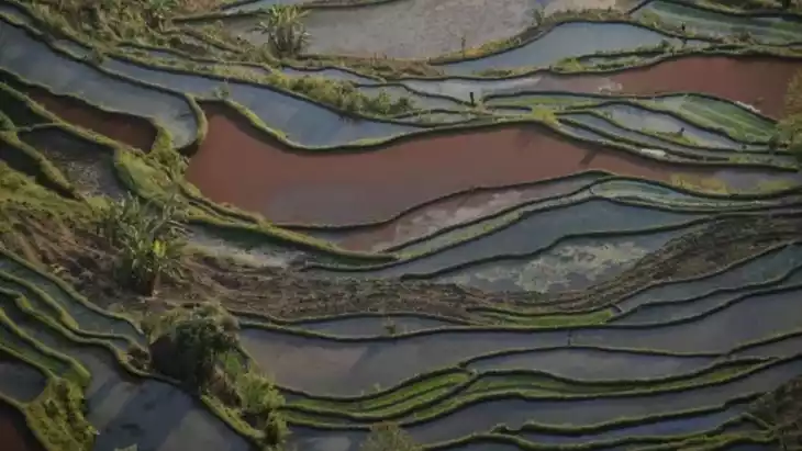The terraced fields in the Bada Scenic Area are vast, spectacular, and feature beautiful lines and a strong sense of three-dimensionality. Starting from the Malizhai River at an altitude of 1,100 meters, thousands of terraces stretch endlessly to the peaks of the mountains at an altitude of 2,000 meters, lifting the Hani villages of Malizhai, Bada, Shangmadian, and Quanfuzhuang high into the sea of clouds.