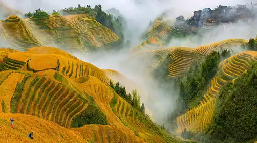 Every October, half a month after the rice matures, the mountains and fields are covered with golden color that twists and stretches out. If you like photography, the beauty will make you reluctant to leave.