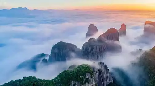 Shenxianju, a famous ancient mountain also known as Weiqiang Mountain, is located in Xianju County, Taizhou, Zhejiang Province. Its unique geological structure is the world's largest cluster of volcanic rhyolite landforms. Every mountain, river, cliff, cave, rock, and peak is unique, forming six unique wonders: Guanyin, Tathagata, Tianmu Peak, Sea of Clouds, Waterfall, and Tadpole Script. The mountain is dotted with bamboo forests and waterfalls, preserving its pristine wildness.