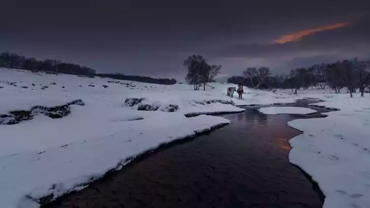 After the spring snow melts, the grass begins to sprout new green leaves, the birch forests begin to bloom, and the hillsides are covered with hawthorn flowers; in midsummer, hundreds of flowers bloom, white clouds dot the blue sky, and the clouds roll and unfold at sunrise and sunset; in autumn, the birch trees turn yellow and the maple leaves turn red, and it looks like a colorful oil painting; thousands of miles of ice, layers of mist, snow-capped mountains, and a blue ice and starry sky are filled with quiet beauty.