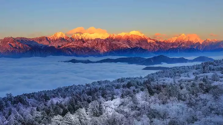 Panoramic view of the mountains: Standing on the top of Niubei Mountain, you can enjoy the panoramic view of Gongga Mountain, the king of Shu Mountains, as well as Mount Emei, Mount Siguniang, Mount Wawu, Mount Jiajin, and Mount Erlang.