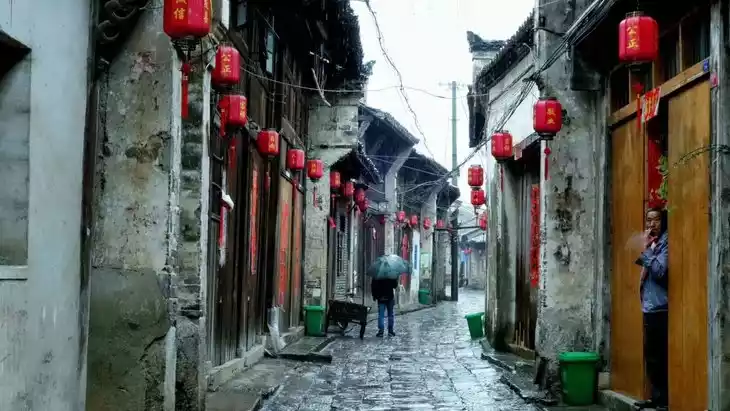 There are several small restaurants and cafes near the base of Jinlong Mountain, offering local Anhui dishes, snacks, and beverages.