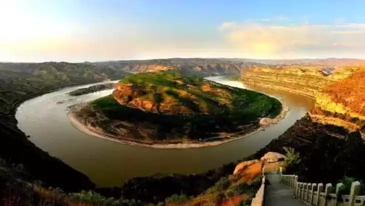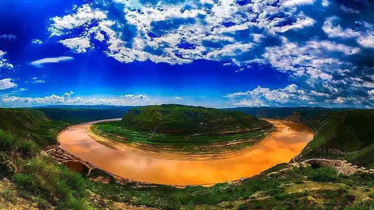 Hukou Waterfall is a natural waterfall formed by the middle reaches of the Yellow River as it flows through the Shanxi-Shaanxi Grand Canyon. It borders Ji County, Shanxi Province to the east and Yichuan County, Shaanxi Province to the west. As the Yellow River's surging waters reach this point, their 500-meter-wide torrent is suddenly bounded by the banks, becoming wider at the top and narrower at the bottom. The 50-meter drop, like the might of a giant pot, gives it the name "Hukou Waterfall."