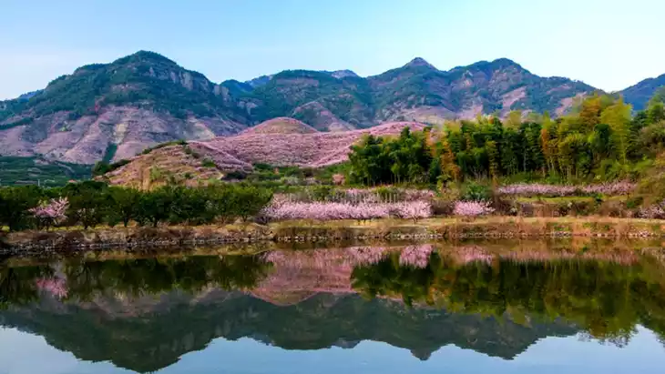 In March and April, vast expanses of wild redbuds burst into bloom at Zhuanlun Rock. A 20-kilometer hike through Yuandong Taohuawu offers a spectacular floral spectacle. Over 1,000 mu (approximately 1,000 mu) of peach trees, in full bloom, are a truly spectacular sight.