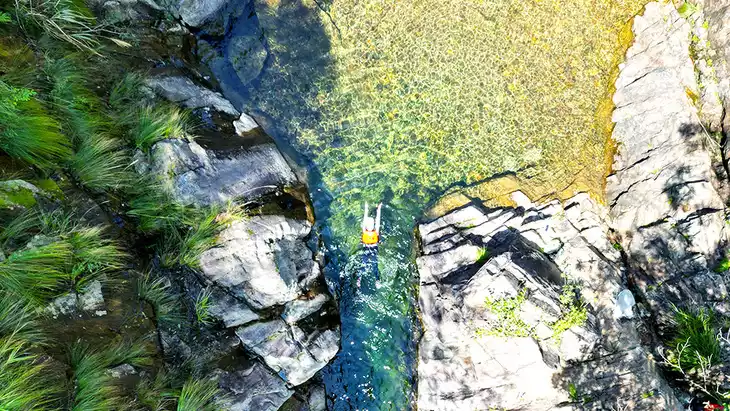 The lake's surface shimmers brilliantly, its turquoise waters embracing the sky. Strange rocks tower along its banks, ancient trees and vines drape across the water. In spring, the lush greenery resembles a blanket, peach blossoms blaze like clouds, and towering pavilions and precarious buildings loom among them, creating a scene reminiscent of a fairyland. Peach Blossom Pond is dotted with numerous natural and cultural attractions: the thousand-year-old Lei Yudun, the mysterious Shuban Stone, the Rainbow Hill where Li Bai slept drunkenly, the ancient An Pavilion where the sound of dance echoes, and the ancient dwellings clad in blue brick and black tile... The misty waters of Peach Blossom Pond enchant the senses, and the spring scenery of the peach grove captivates the senses. Every step is a scene, and the scenery is delightful in all seasons.