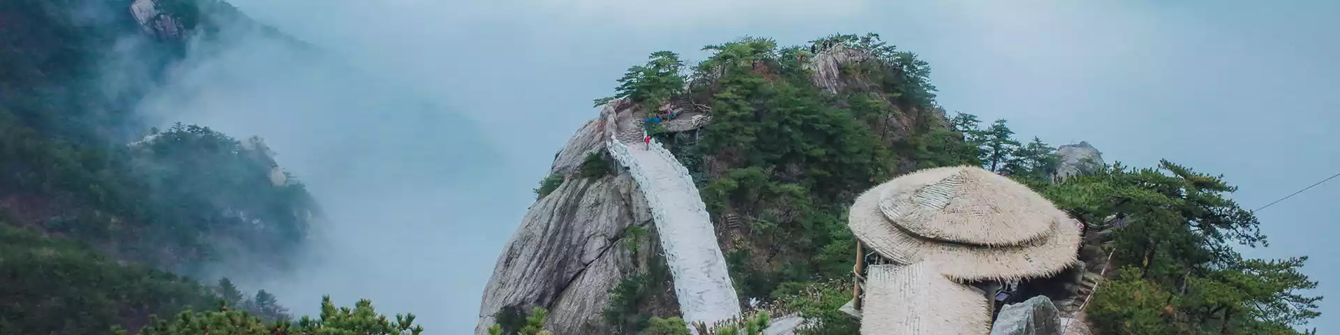 Located in Huanggang, Hubei. Accessible by bus or taxi from the city center; walking trails are available within the mountain area.