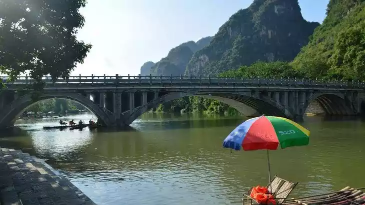 The Yulong River, the longest tributary of the Li River in Yangshuo, boasts crystal-clear waters, creating stunning landscape photos. There are three ways to explore the Yulong River: walking, cycling, and rafting. Rafting on the Yulong River is highly recommended, offering one of the most picturesque rafting routes. For a day trip, cycling the first half and rafting the second half (Jima to Wanjing) is recommended. The bike ride will take you past the Fuli Bridge, offering a prime vantage point for appreciating the idyllic scenery along both sides of the river.