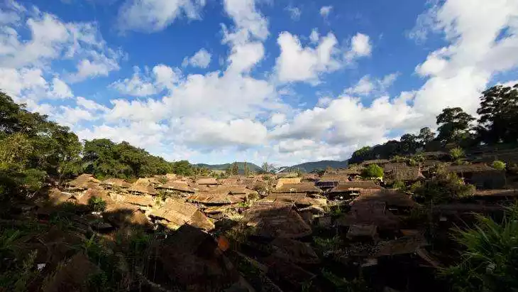 The Mengda Grassland Scenic Area consists of 10,000 mu of sloping grassland pastures, 10,000 mu of dwarf rhododendron forests, the Natural Bridge, the Gesuo River Canyon, the Helongtankou Cave, the Ten-Li Art Gallery, the Badashan Sunrise, the Baiyu Cave and other attractions. It also includes 42 natural and cultural landscapes such as the ancient banyan tree group, 1,000 mu of natural forest, the ancient tomb of Long Tianyou, the Yi village, the Yi "Torch Festival", the Bai "Torch Festival" and so on.