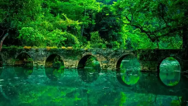 Libo Xiaoqikong (Little Seven-hole Arch) is a National AAAAA-level scenic spot and a World Natural Heritage Site. It is located in the southwest of Libo County, Qiannan Buyi and Miao Autonomous Prefecture, Guizhou Province, 28 kilometers from the county seat. At the north end of the scenic area lies the Xiaoqikong Ancient Bridge, built in 1836 during the reign of Emperor Daoguang, which derives its name from it.