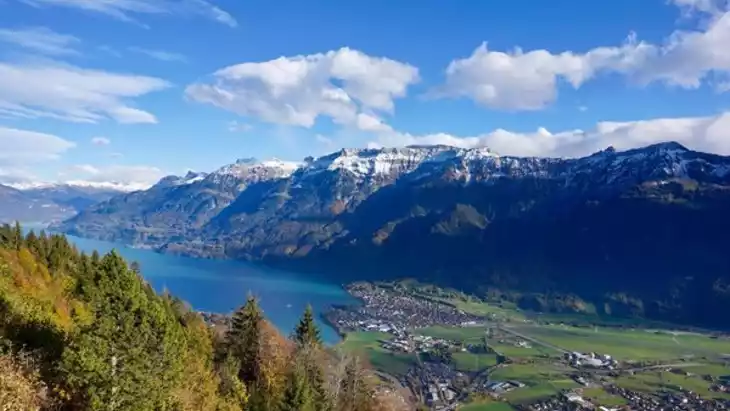 The crystal clear lake water, the elegant white swans, the majestic Alps, the scenery is more beautiful than a postcard.