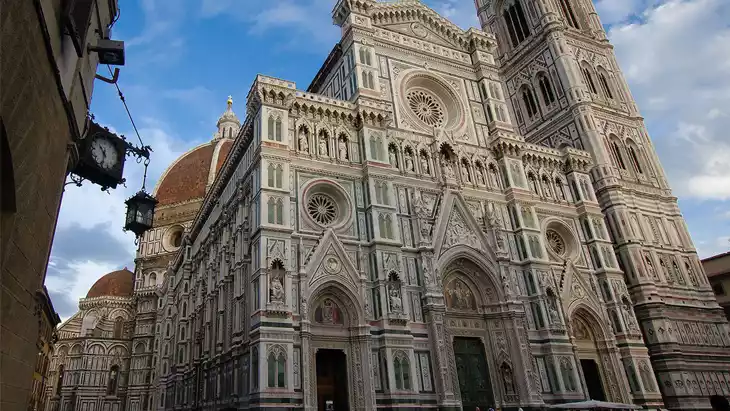 This cathedral is the cathedral of the Archdiocese of Florence and the tallest building in the city. Climbing its 463 steps offers panoramic views of Florence. "Florence" means "City of Flowers" in Italian. It is one of the five largest cathedrals in the world and has been voted the world's most beautiful. The poet Xu Zhimo translated it as "Florence Green." It is a representative building of the early Renaissance. Its red, green, and white exterior is exquisitely decorated. The complex, comprising the cathedral, bell tower, and baptistery, is a grand affair.