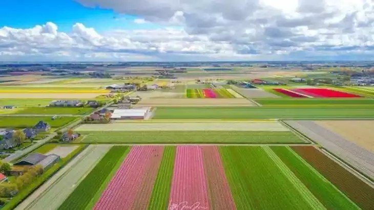 Anna-Paulna, a small town in North Holland province, 70 kilometers north of Amsterdam, is known as the "Flower Mosaic Town." Every spring, a variety of flowers bloom, hundreds of acres of flower fields bursting into a vibrant display of color, filling the town with the rich fragrance of flowers. The local Flower Mosaic Competition attracts many visitors each year.
