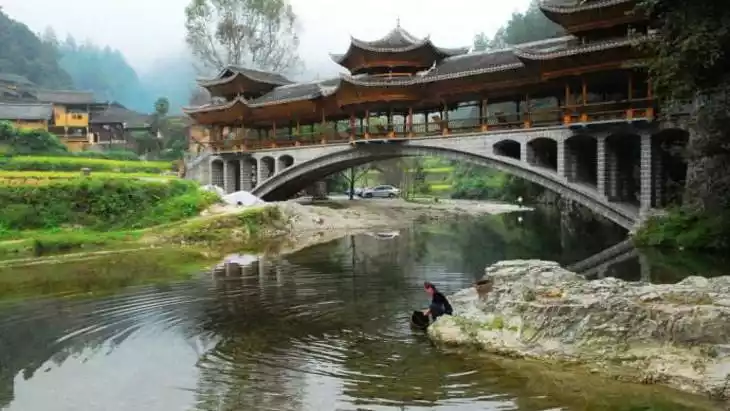 Langde Shangzhai, a Miao village with hundreds of households, is located in the heart of the Miaoling Mountains, 27 kilometers southeast of Kaili City in Qiandongnan Miao and Dong Autonomous Prefecture. Known as the "Hometown of Chinese Folk Song and Dance," "One of the 100 Open-Air Museums in China," and "Hometown of the Lusheng," the village's distinctive long skirts earn it the nickname "Long Skirt Miao." The Langde Shangzhai ancient building complex has been designated a fifth-batch key cultural relic protection site in my country. Nestled between mountains and water, the village boasts a quieter atmosphere than the Xijiang Thousand Household Miao Village, where visitors can enjoy Miao folk songs and dances such as toasting songs, Miao flying songs, and Lusheng dances.