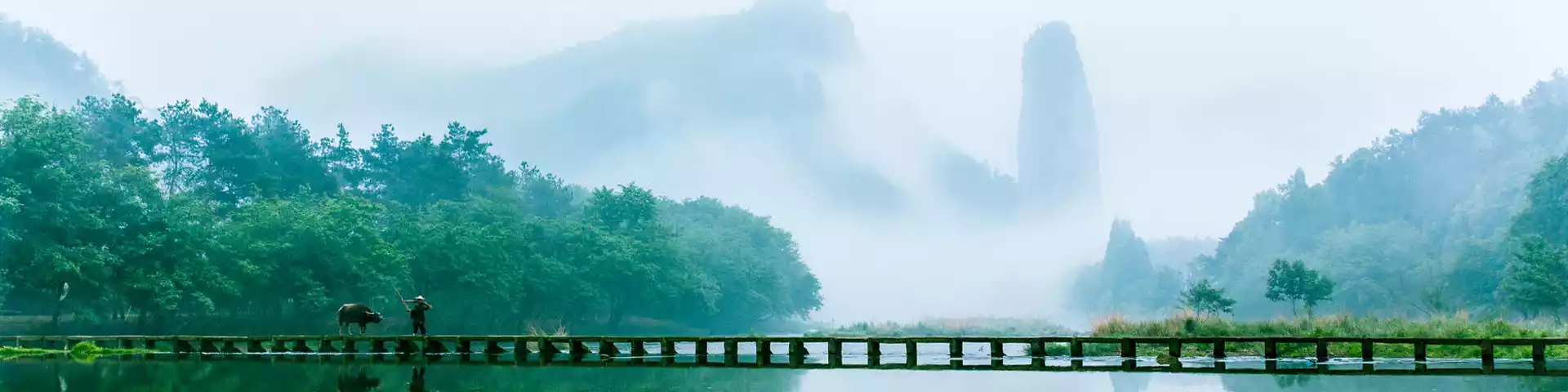 The Xiandu Scenic Area encompasses the four major scenic areas of Xiandu, Huanglong, Yanmen, and Dayangshan, as well as over 300 sub-scenic spots, including Dinghu Peak, Niweng Cave, Xiao Chibi, Furong Gorge, Zhutan Mountain, and the Zhaohou Temple. The Nine-Bend Lianxi River and the Ten-Mile Art Gallery offer elegant scenery, shrouded in mist, and idyllic, wild charm, combining the beauty of Guilin, the wonders of Huangshan, and the dangers of Huashan. Dinghu Peak, in particular, is known as the "World's No. 1 Bamboo Shoot."