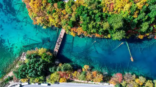 Jiuzhaigou's scenery has its own unique characteristics in each season, but most people prefer to visit in late autumn. The colorful forests and the blue-green lakes create a vibrant world.