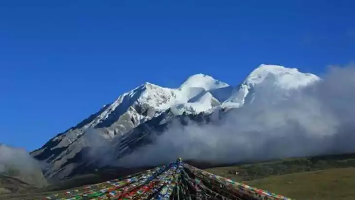 The Tibetan name means "spiritual grassland god," reflecting the reverence and hope held by the Tibetan people. These four peaks and their surrounding areas were heavily impacted by Quaternary glaciers, forming the steep mountain range we see today. The northwest slope is particularly steep, creating a dramatic and rugged mountain range.