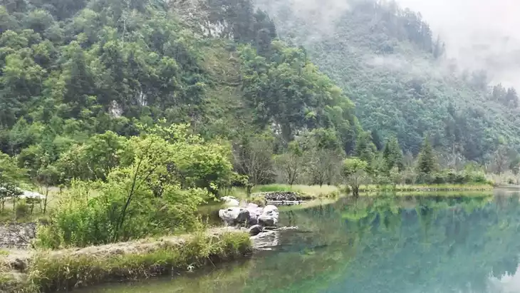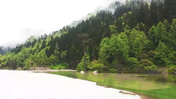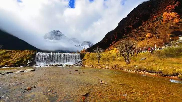Bipenggou has been compared to the beautiful back view of Siguniang Mountain. It is a colorful world of lush green trees, deep red leaves, emerald lakes, azure skies, and pure white snow; it is a colorful world of precipitous peaks, a glacier, and a temple on earth.