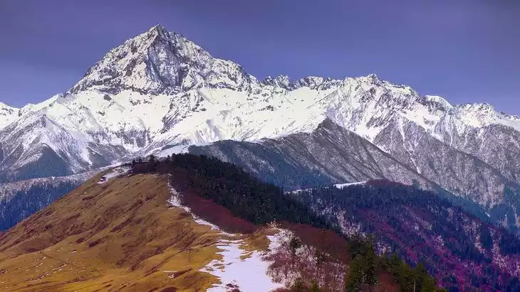 Dagu Glacier, located in Heishui County, Aba Tibetan and Qiang Autonomous Prefecture, Sichuan Province, China, is a rare modern mountain glacier and a dazzling gem within the Jiuzhaigou International Tourist Area, Aba , Sichuan Province , China . Covered year-round with snow, Dagu Snow Mountain's majestic peaks, with their staggered formations, shimmer in the sunlight, creating a truly spectacular sight.