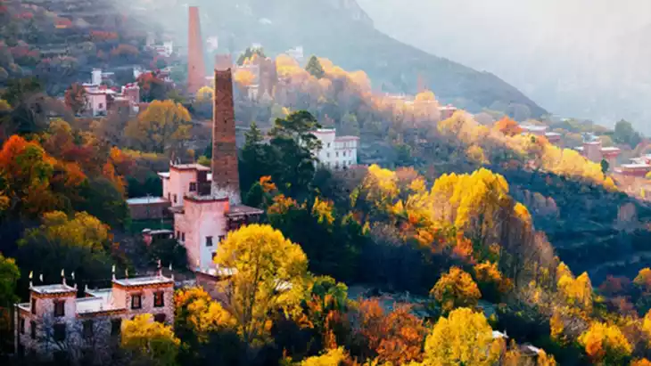 The Dajinchuan Pear Blossom and Red Leaf Scenic Area is located in the Dajinchuan River Valley. It boasts the largest spectacle of pear blossoms and red leaves on the snowy plateau, and is a nationally renowned snow pear production area. Known as the "Hometown of Snow Pear," pear trees are planted throughout the mountains, from the fertile soil of the river dam to the hillsides.