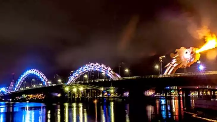 Yes — Dragon Bridge fire/water shows (weekends), evening strolls along river, night markets, and illuminated bridges. Also, night opening of theme parks or cable car attractions in Ba Na occasionally.