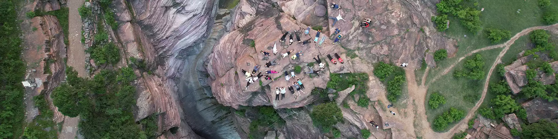 Over 200 attractions are located in the area, including the Red Rock Cliff Grand Canyon, the Film and Television Village, the Cliff Corridor, the Heavenly Lake, the Lotus Basin, the Shouting Spring, the Sun, Moon, and Star Stone, the Black Dragon Pool Waterfall, the Five Peaks Forest, the Yellow Dragon Cave, the Mojian Peak, the Luojie Village, the Sun Bin Spring, the Hulu Peak, the Qilang Peak, and the Zijing Mountain. The scenic natural scenery and quaint folk customs have attracted numerous Chinese and foreign tourists, artists, and film and television giants.