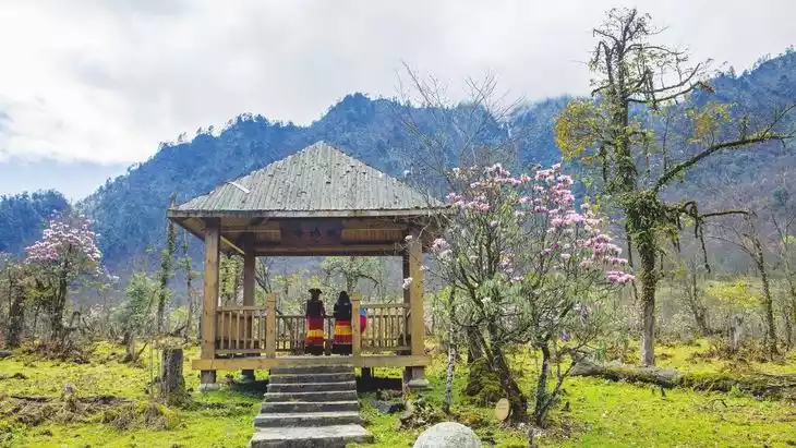 Souvenir shops sell Buddhist artifacts, local handicrafts, postcards, teas, and mountain-themed trinkets.