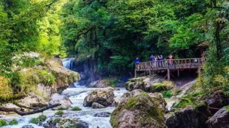 Start at the base, follow the main trail to waterfalls, then proceed to temples and observation decks, and loop back via a scenic forest trail for a complete experience.